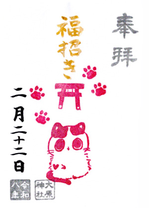 「福招き猫御朱印」頒布のお知らせ 2026年2月20日 お知らせ 2月21日、22日、23日の3日間、「福招き猫御朱印」を頒布いたします。 「福招き猫」 直書きのみ 1体500円 2月21~23日 3月からは閉所日を除く寅の日に、また猫は半年ごとに変わる予定です。 寅は金運を呼び込む縁起物とされ、猫も癒しの象徴、または幸運を招く猫と親しまれています。 まずは大原神社に遊びに来る猫たちをモチーフに「福招き猫」を頒布いたします。 お初穂料の一部は地域猫のご飯代とさせていただきます。 どうぞ皆様、愛らしい「福招き猫」の御朱印をお受けくださいませ。